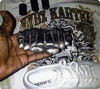 According to media reports Jamaicandancehallmusic.com understands that the Jamaican pop culture entertainer Vybz Kartel real name Addijah Palmer has more or less launched his latest line of products. These include his new shoe called Addi's, dog tags, belt buckles and T-Shirts all aimed at the teen market.. (the impressionable minds). Kartel indicated that the T-shirts are not quite ready as yet, they will be available in female and male designs. The dog tags and belt buckles are now available for sale alongside his other products which includes the street vybz rum and the daggering condoms.